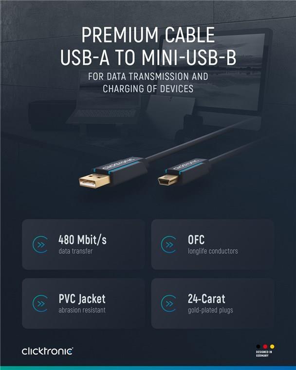 ClickTronic 1.8m USB 2.0 A-mini B m/m 1.8m USB A Mini-USB B Blau USB Kabel (70127)
