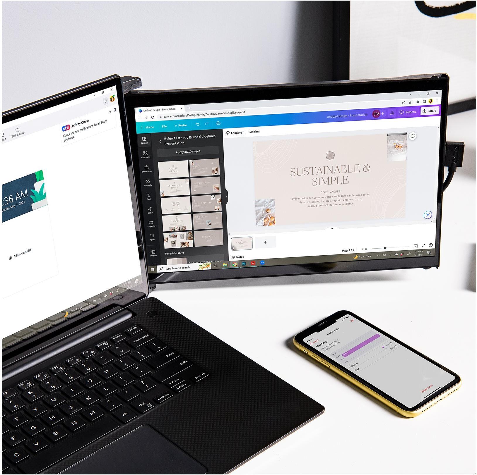 Der DUEX Max DS wurde für Profis entwickelt, die Flexibilität und Leistung verlangen, und verfügt über Funktionen wie den Eye Care-Modus zur Verringerung der Augenbelastung bei langen Arbeitssitzungen sowie die automatische Drehung für einen nahtlosen Übergang zwischen Hoch- und Querformat. Seine Kompatibilität mit Samsung DeX und dem Präsentationsmodus erhöht seinen Nutzen in verschiedenen professionellen Szenarien zusätzlich. Mit einem typischen Stromverbrauch von nur 4,5 Watt ist er eine energieeffiziente Wahl für mobile Produktivität.