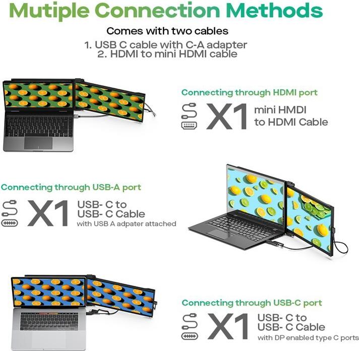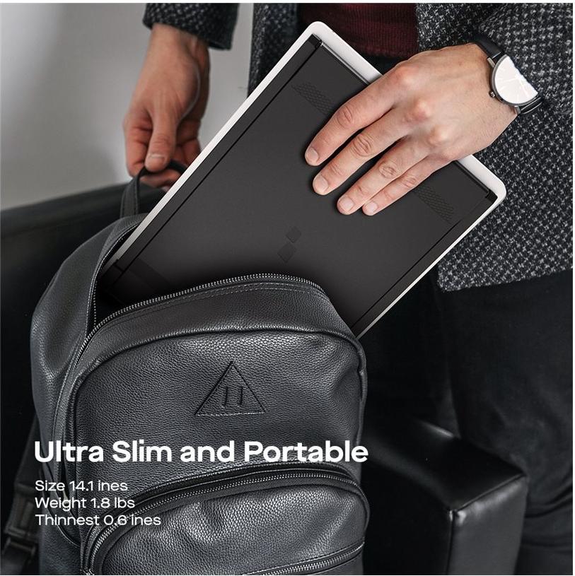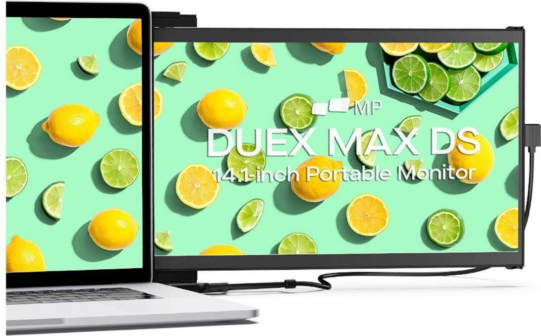 Der Mobile Pixels DUEX Max DS steigert dank seines tragbaren und vielseitigen Designs die Produktivität unterwegs. Dieser 14,1-Zoll-LCD-Monitor mit erhöhtem Rahmen und einem Breitbildformat von 16:9 bietet eine außergewöhnliche Bildqualität mit einer Auflösung von 1920 x 1080. Die Helligkeit des Displays von 300 cd/m² und das Kontrastverhältnis von 700:1 sorgen für lebendige und dynamische Bilder, während die IPS-Technologie große Betrachtungswinkel bietet.