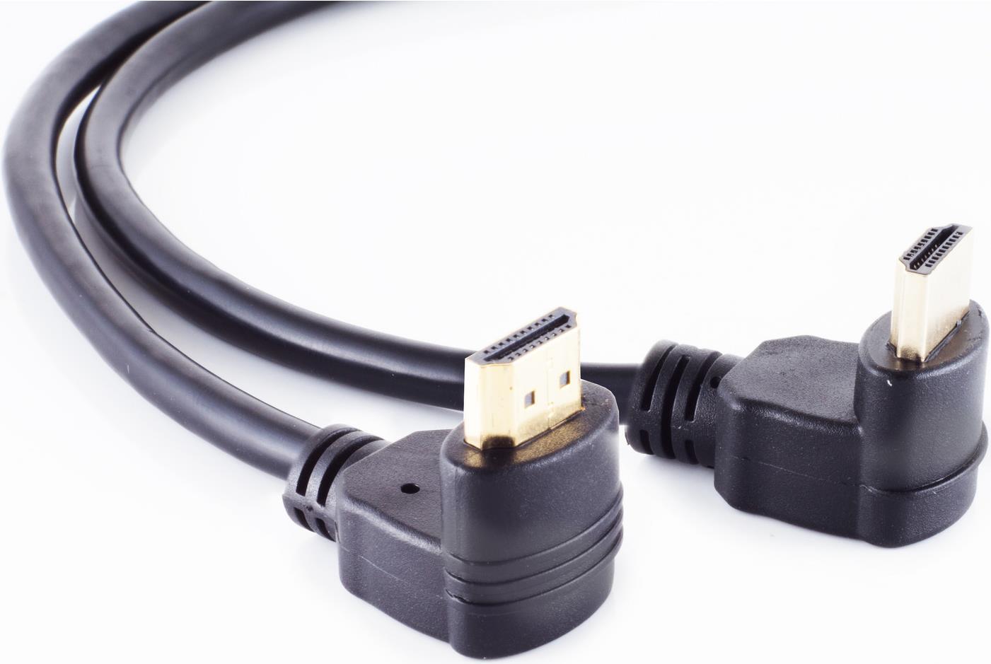 Monitorkabel 2 x HDMI Typ A-Stecker gewinkelt , 1.3b, 1,5 m HDMI A-Stecker gewinkelt - HDMI A-Stecker gewinkelt, 24-K vergoldete Kontakte, Kabelfarbe: schwarz, Full HD geeignet, HDMI 1.3b zertifiziert, optimiert für digitale HDTV Signale 720 i/p - 1080 i/p, max. Auflösung: 1920 x 1080 Digital Audio/Video Übertragungsrate; 10,2 Gigabit/Sek.
