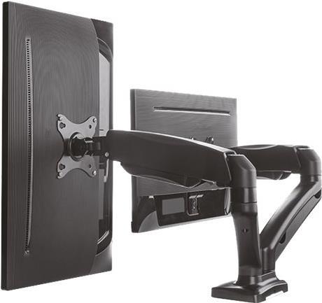 Ganz egal, wie Sie am liebsten arbeiten, die verschiedenen Gelenke sind in vielen Winkeln zu bewegen. So kann der Monitor genau so ausgerichtet werden, wie man es gerade benötigt. Eine volle Rotation von 360° ist möglich, genauso wie die Verstellung der Höhe, Neigung oder Entfernung zum Betrachter.