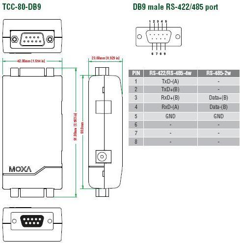 Moxa TCC-80-DB9 Serieller Konverter/Repeater/Isolator RS-232 RS-422/485 (TCC-80-DB9)