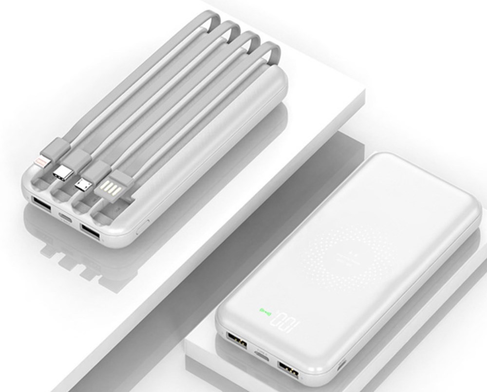 Hochwertige Powerbank mit integriertem Induktion zum Laden von Smartphones ohne Kabel.