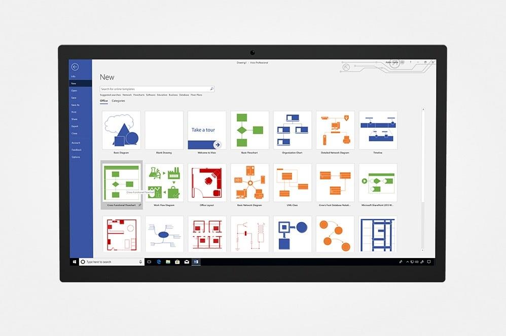 Gestalten Sie ganz einfach leicht verständliche Diagramme. Eine große Auswahl vorgefertigter Vorlagen, Startdiagramme und Schablonen finden Sie in den Visio-Anwendungen für den Desktop und das Web.