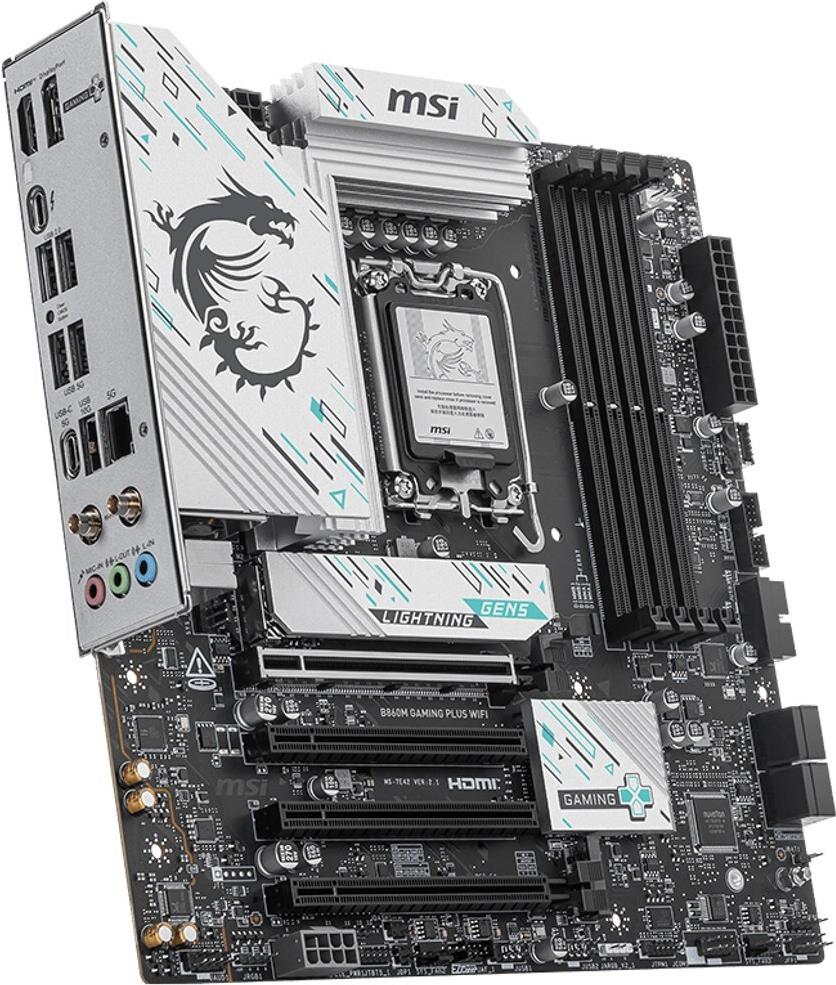 Das MSI B860M GAMING PLUS WIFI-Motherboard ist für Spielspaß und Produktivität ausgelegt und verfügt über einen Micro-AT-Formfaktor, der in kompakte Systemaufbauten passt. Mit Unterstützung für Intel Core Ultra-Prozessoren und DDR5-RAM-Technologie bietet dieses Motherboard eine solide Grundlage für Hochleistungs-Computing. Ausgestattet mit mehreren Erweiterungssteckplätzen, darunter PCIe 5.0- und M.2-Sockel, können Benutzer ihre Systeme aufrüsten, um Hardware-Verbesserungen zu berücksichtigen. Die Netzwerkfunktionen werden durch 5-Gigabit-Ethernet, Wi-Fi 6E und Bluetooth 5.4 verbessert, was eine schnelle Konnektivität für Online-Anwendungen gewährleistet. Audio hat Priorität mit hochauflösenden Audiofunktionen, die durch den Realtek ALC897-Codec angetrieben werden und ein Klangerlebnis durch 8-Kanal-Audio-Unterstützung bieten. Zu den weiteren Funktionen gehören MSI Audio Boost, das die Audioqualität verbessert, und ein einfaches Überspannungsschutzsystem für einen sicheren Betrieb. Das Design umfasst MSI Steel Armor für Langlebigkeit, eine vormontierte E/A-Abschirmung für eine einfache Installation und einen DIY-freundlichen Ansatz, der den Montageprozess vereinfacht. Diese Eigenschaften machen das MSI B860M GAMING PLUS WIFI zu einer idealen Wahl für Gamer und Profis, die Zuverlässigkeit und Leistung in ihren Systemen suchen.