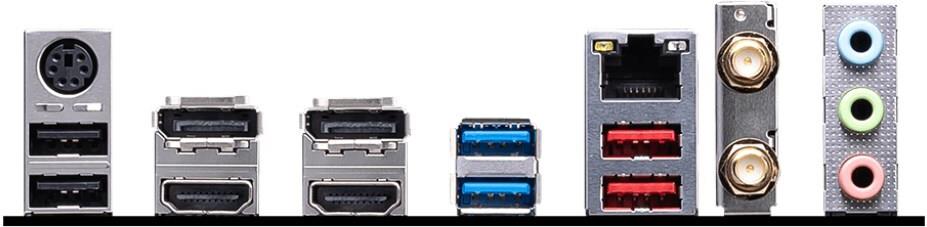 | Schnittstellen | 1 x HDMI 1 x DisplayPort 2 x USB 2.0 2 x USB 3.2 Gen 1 2 x USB 3.2 Gen 2 1 x LAN (2.5Gigabit Ethernet) 2 x Antenne 1 x Audio Line-Out - Mini-Klinkenstecker 1 x Mikrofon - Mini-Klinkenstecker 1 x Audio Line-Out - Mini-Klinkenstecker 1 x PS/2-Tastatur/-maus |