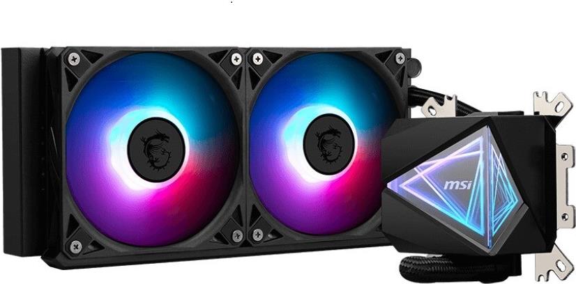 Das MSI MAG CORELIQUID I240 Prozessor-Flüssigkeitskühlsystem wurde entwickelt, um eine effiziente Kühlleistung und eine atemberaubende Ästhetik für Ihren PC zu liefern. Mit einem 240-mm-Aluminium-Radiator, zwei 120-mm-ARGB-Lüftern und einer Hochleistungspumpe, die mit 3400 Umdrehungen pro Minute arbeitet, leitet dieses Kühlsystem die Wärme effizient von Ihrer CPU ab und sorgt dafür, dass sie auch bei starker Belastung bei optimalen Temperaturen läuft. Das Design des doppelten Spiegeldeckels in Kombination mit der ARGB-Beleuchtung, die mit MSI Mystic Light Sync kompatibel ist, ermöglicht ein vollständig anpassbares Beleuchtungssetup, das die visuelle Attraktivität Ihres Systems erhöht. Der MSI MAG CORELIQUID I240 ist mit nylonumflochtenen EPDM-Rohren und einem Kupferkühlkörper ausgestattet, um eine zuverlässige und langlebige Kühllösung zu bieten. Seine universelle Kompatibilität mit einer Vielzahl von CPU-Sockeln, einschließlich Intels LGA1150, LGA1151, LGA1155, LGA1156, LGA1200, LGA1700 und AMDs Sockel AM4 und AM5, macht ihn zu einer vielseitigen Wahl für verschiedene Builds. Darüber hinaus ist das Kühlsystem für den Heimwerker konzipiert und verfügt über EZ Connect und eine UNI-Halterung für einen problemlosen Installationsprozess. Egal, ob Sie ein erfahrener PC-Bauer oder ein PC-Neuling sind, das MSI MAG CORELIQUID I240 bietet sowohl die Leistung als auch die Ästhetik, um Ihr Computererlebnis zu verbessern.