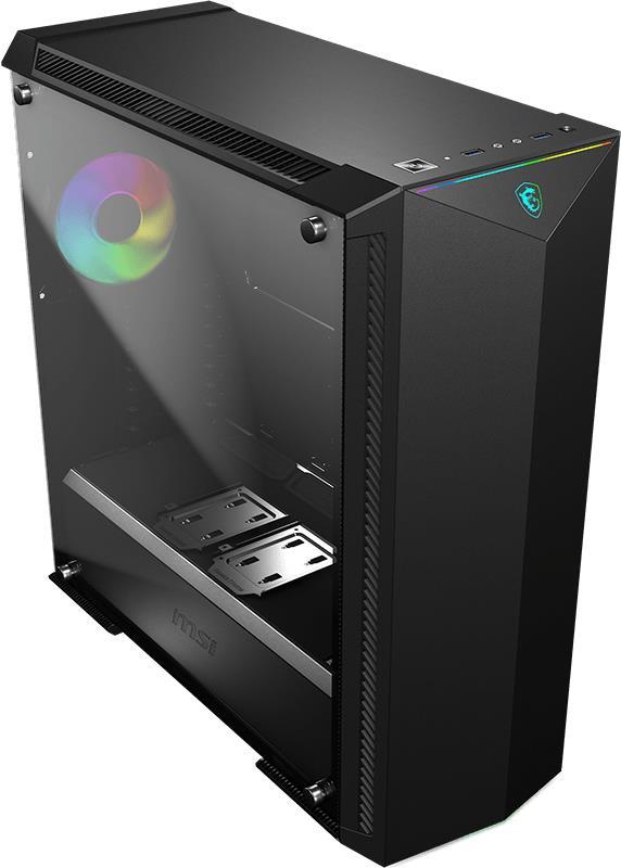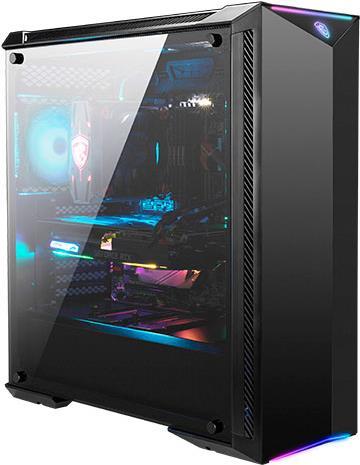 | Systemgehäuse-Merkmale | Kabelführungsbohrungen, Seitenteil aus gehärtetem Glas, unterstützt oberen 360-mm-Radiator, für Wasserkühlung geeignet, MSI RGB Mystic Light Sync, ARGB-Lüfter, unterstützt 420-mm-Radiator in der Vorderseite |