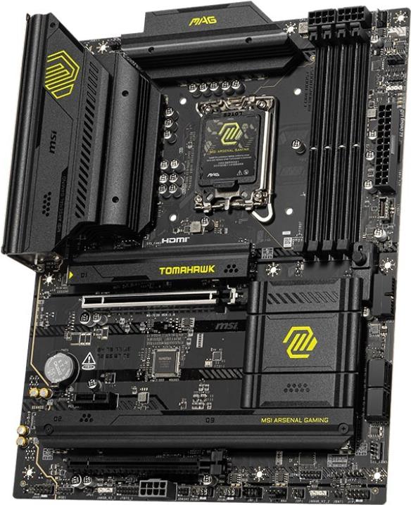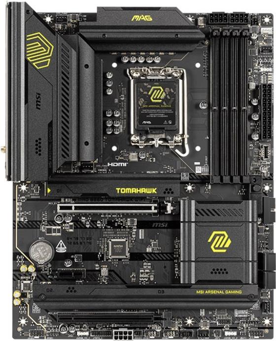 Das MSI MAG B860 TOMAHAWK WIFI-Motherboard wurde für Benutzer entwickelt, die zuverlässige Leistung und umfangreiche Funktionen benötigen. Es unterstützt Intel Core Ultra-Prozessoren mit LGA1851-Sockel-Kompatibilität und bietet einen robusten Chipsatz mit Intel B860. Mit vier DIMM-Steckplätzen unterstützt dieses Motherboard DDR5-SDRAM mit Geschwindigkeiten von bis zu 4600 MHz (O.C.), was effizientes Multitasking und Hochgeschwindigkeits-Datenverarbeitung ermöglicht. Das MAG B860 TOMAHAWK WIFI ist mit verschiedenen Anschlussoptionen ausgestattet und verfügt über verschiedene USB-Anschlüsse, darunter USB-C 3.2 Gen 2 und USB4, die eine schnelle Datenübertragung und Ladefunktionen gewährleisten. Die Vernetzung wird durch 5-Gigabit-Ethernet und Wi-Fi 6E unterstützt, was einen nahtlosen Internetzugang ermöglicht. Der MSI Audio Boost des Motherboards verbessert das Audioerlebnis, während die Mystic Light-Funktion die Anpassung von Lichteffekten ermöglicht und Ihrem Setup eine ästhetische Note verleiht. Zu den integrierten Langlebigkeitsmerkmalen gehören außerdem ein Überspannungsschutz, ein robustes Stromversorgungsdesign und ein verlängerter Kühlkörper, die Stabilität bei anspruchsvollen Aufgaben gewährleisten.