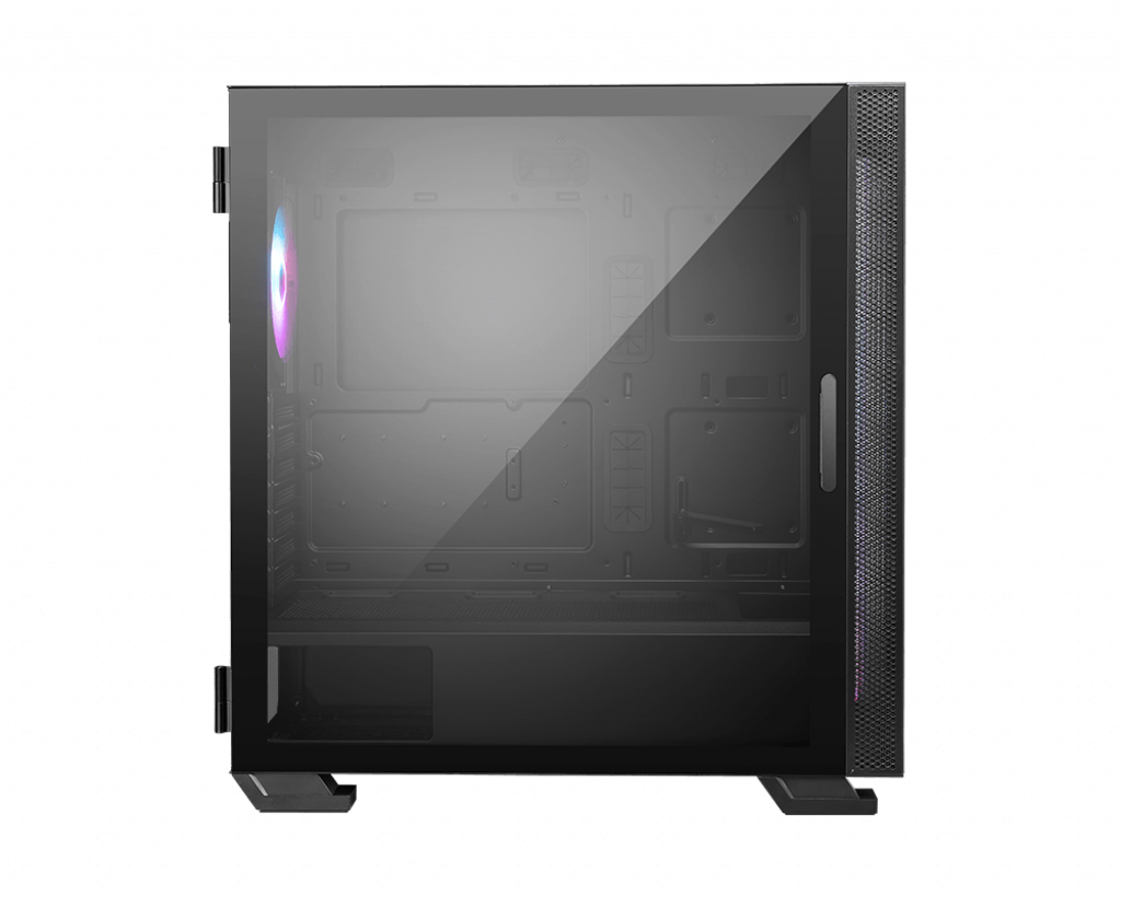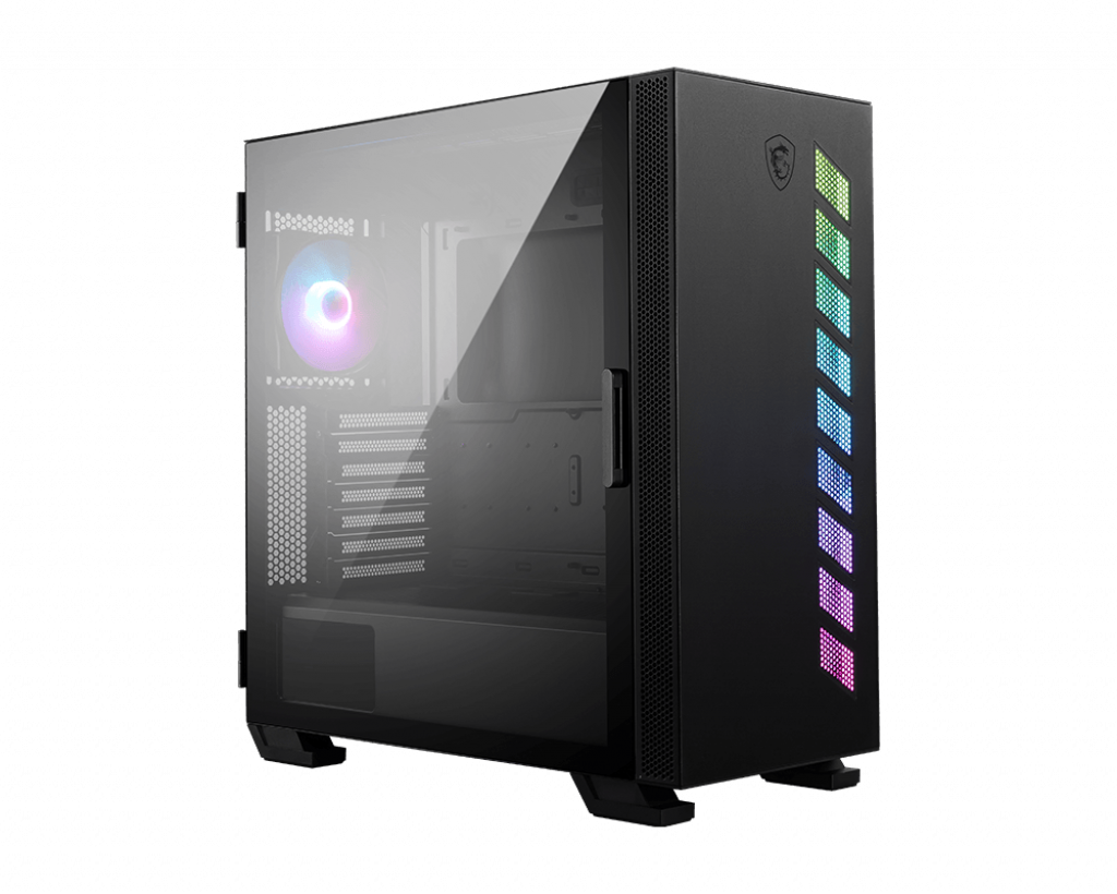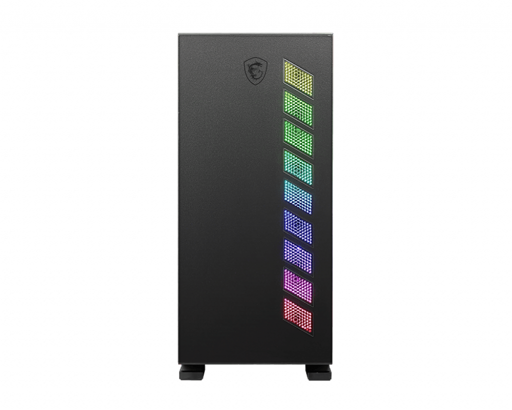 | Systemgehäuse-Merkmale | Unterstützt Radiator (120 mm) in der Rückseite, magnetischer Staubfilter am Boden, unterstützt 120/140/240/280/360 mm Radiator in Vorderwand, unterstützt 120/140/240/280/360 mm Radiator oben, magnetischer Staubfilter oben, wärmebehandeltes Glas, linkes Panel, MSI RGB Mystic Light Sync, ARGB Lichtleiste, VGA bracket |