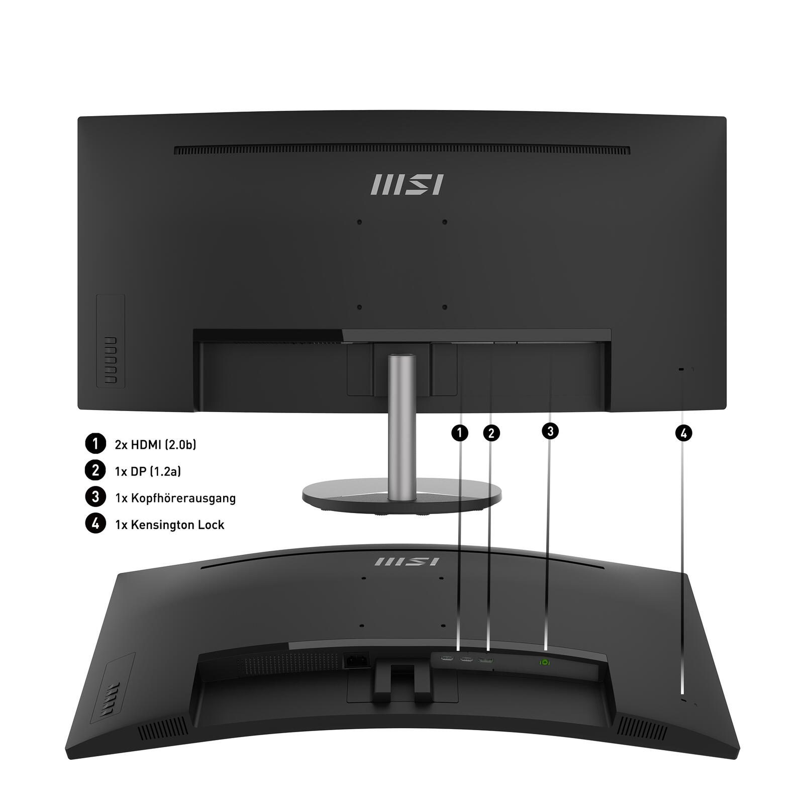 MSI PRO MP341CQDE Curved Monitor 86,4 cm (34") Schwarz - UWQHD, VA, 100Hz, 4ms, HDMI, DisplayPort, FreeSync [Energieklasse G] (9S6-3PB2CT-042)