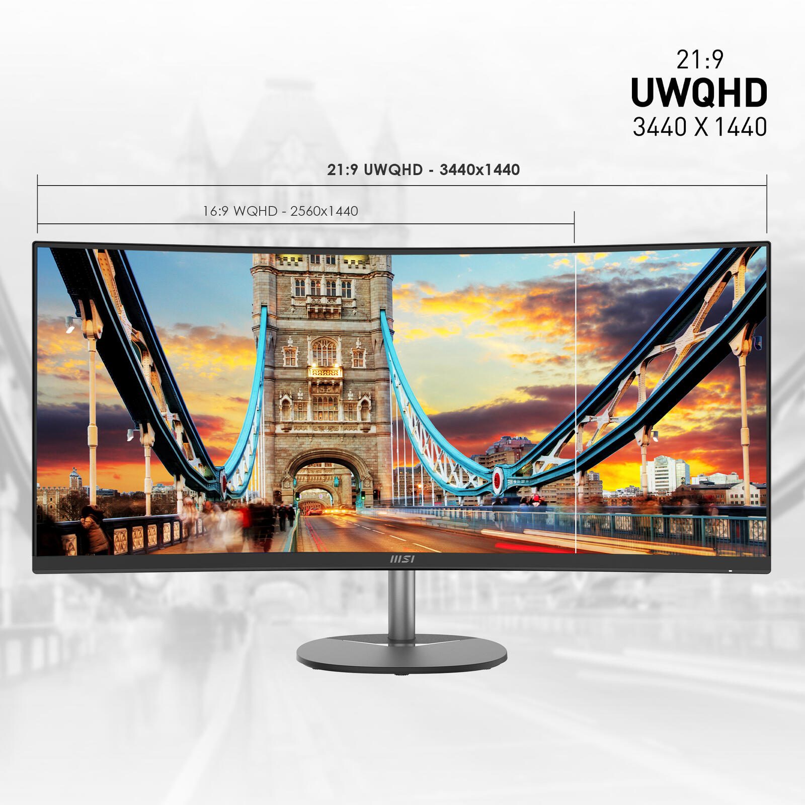 • MSI PRO MP341CQDE Curved Monitor 86,4 cm (34") Schwarz - UWQHD, VA, 100Hz, 4ms, HDMI, DisplayPort, FreeSync [Energieklasse G] (9S6-3PB2CT-042)