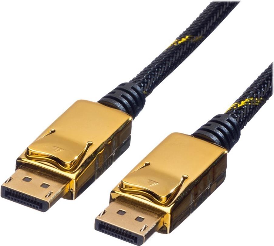 ROLINE GOLD DisplayPort Kabel mit beidseitigem DP-Anschluss für das Verbinden eines Ultrabooks, Notebooks/Laptops oder PCs mit einem Monitor, TV, Beamer oder Projektor - für Bildschirmübertragungen in exzellenter Qualität mit einer Auflösung von bis zu 4096x2160 @60Hz!