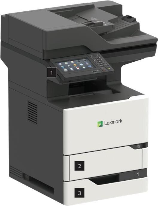 Ausgabegeschwindigkeiten von bis zu 65 [61] Seiten/min und eine Standardfestplatte unterstützen das Lexmark MX721adhe Monochrom-Multifunktionsgerät dabei, Anforderungen für große Arbeitsgruppen zu erfüllen. Dabei ermöglicht das Format eine flexible Platzierung. Dank der robusten Papierhandhabungstechnologie wird das Drucken zuverlässiger, langlebige Bildbelichtungskomponenten erhöhen die Geräteverfügbarkeit, während die Wartbarkeit durch die durchdachte Konstruktion vereinfacht wird. Dank des Tablet-ähnlichen 7-Zoll-[17,8-cm-]-Touchscreen mit anpassbarem Komfort und Produktivitätsanwendungen der e-Task-Schnittstelle behalten Sie immer den Überblick und die Kontrolle, egal ob Sie eine Verbindung über Ethernet, USB oder mobil herstellen. Und das umfassende Rundum-Sicherheitspaket von Lexmark schützt nicht nur Ihr Gerät und Ihr Netzwerk, sondern auch Ihre besten Ideen.