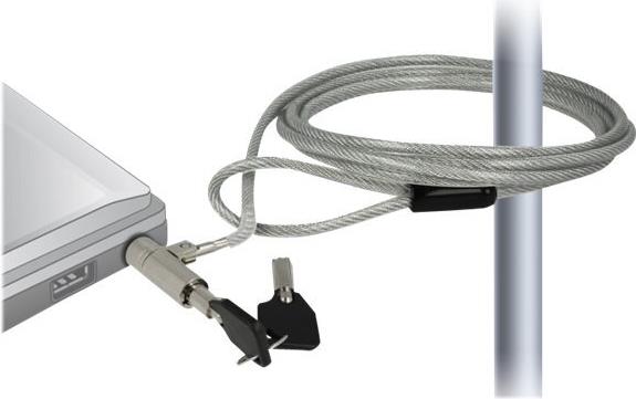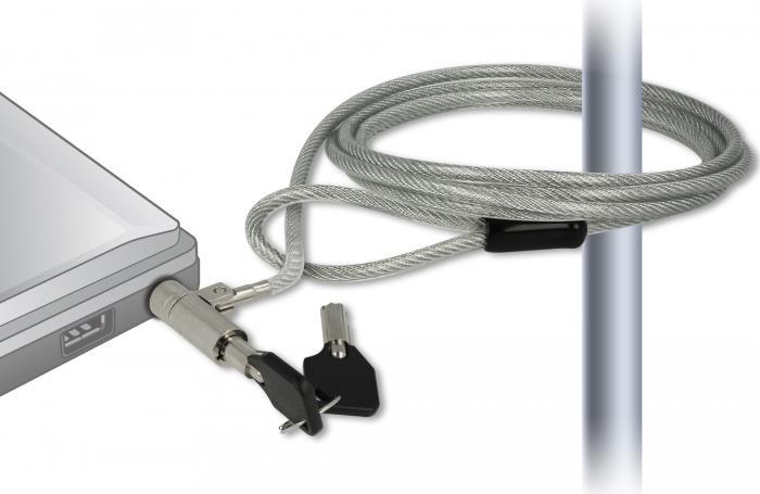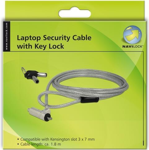 Mit diesem Notebookschloss von Navilock können verschiedene Geräte, wie Notebook, Beamer, Monitor etc. an jedem Ort gesichert werden. Das Stahlkabel mit Schlüssel-Schloss lässt sich ganz einfach um Gegenstände, wie z. B. Tischbein, Stuhl oder Ähnliches anbinden und sichert somit das Gerät vor Diebstahl.