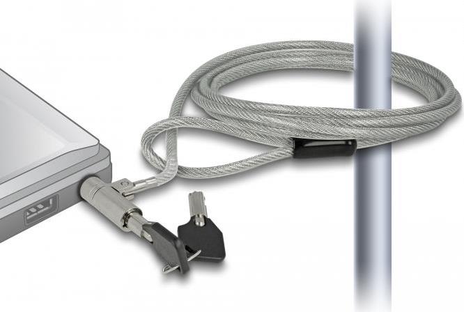 Mit diesem Notebookschloss von Navilock können verschiedene Geräte, wie Notebook, Beamer, Monitor etc. an jedem Ort gesichert werden. Das Stahlkabel mit Schlüssel-Schloss lässt sich ganz einfach um Gegenstände, wie z. B. Tischbein, Stuhl oder Ähnliches anbinden und sichert somit das Gerät vor Diebstahl.