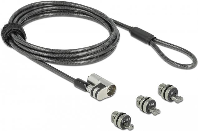Navilock Notebook Sicherungskabel mit 3 Verriegelungsköpfen für Kensington, Noble Wedge und Nano Slot (20676)