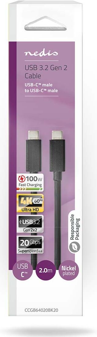 Nedis CCGB64020BK20 USB Kabel USB 3.2 Gen 2 (3.1 Gen 2) 2 m USB C Schwarz (CCGB64020BK20)