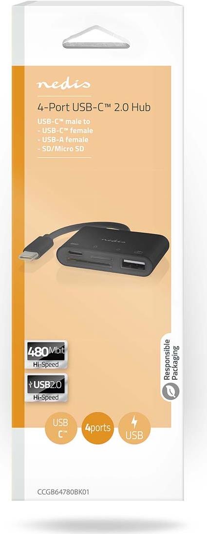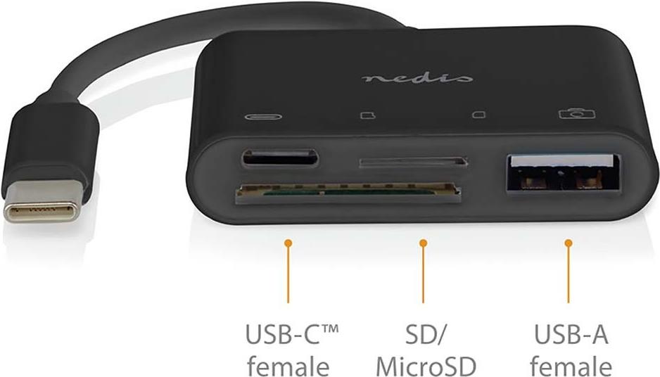 Nedis CCGB64780BK01 - USB 2.0 Type-C - USB 2.0 - USB Typ-C - MicroSD (TransFlash) - SD - Schwarz - Polyvinylchlorid (PVC) - Gleichstrom (CCGB64780BK01)