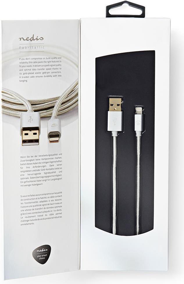 Nedis CCTB39300AL20. Produktfarbe: Aluminium, Anschluss 1: USB A, Anschluss 2: Lightning. Verpackungsart: Sichtverpackung, Verpackungsbreite: 80 mm, Verpackungstiefe: 25 mm (CCTB39300AL20)