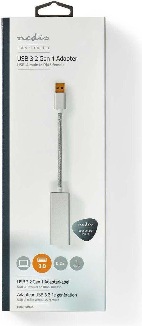 Nedis CCTB61950AL02. Übertragungstechnik: Verkabelt, Hostschnittstelle: USB, Schnittstelle: Ethernet. Maximale Datenübertragungsrate: 1000 Mbit/s. USB. Produktfarbe: Weiß (CCTB61950AL02)