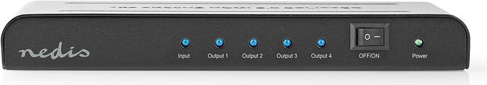 Nedis VSPL3474AT. Video Porttyp: HDMI, Teilnehmerausgang: 4x HDMI. Produktfarbe: Schwarz, HD-Typ: 4K Ultra HD, Maximale Bildwiederholrate: 60 Hz. Eingangsstrom: 2 A, Stromverbrauch (Standardbetrieb): 10 W, Stromverbrauch (Standby): 4 W. Breite: 67 mm, Tiefe: 178 mm, Höhe: 21,2 mm. Menge pro Packung: 1 Stück(e) (VSPL3474AT)