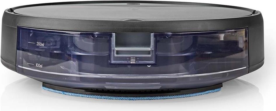 Nedis WIFIVCR001CBK. Staubbehälter Typ: Beutellos, Produktfarbe: Schwarz, Form: Rund. Staubkapazität (gesamt): 0,2 l, Geräuschpegel: 65 dB, Fassungsvermögen Wassertank: 0,23 l. Batteriekapazität: 2500 mAh, Laufzeit: 100 min, Batteriespannung: 14,4 V. Durchmesser (mm): 30 cm, Höhe: 74 mm, Gewicht: 2,5 kg (WIFIVCR001CBK)