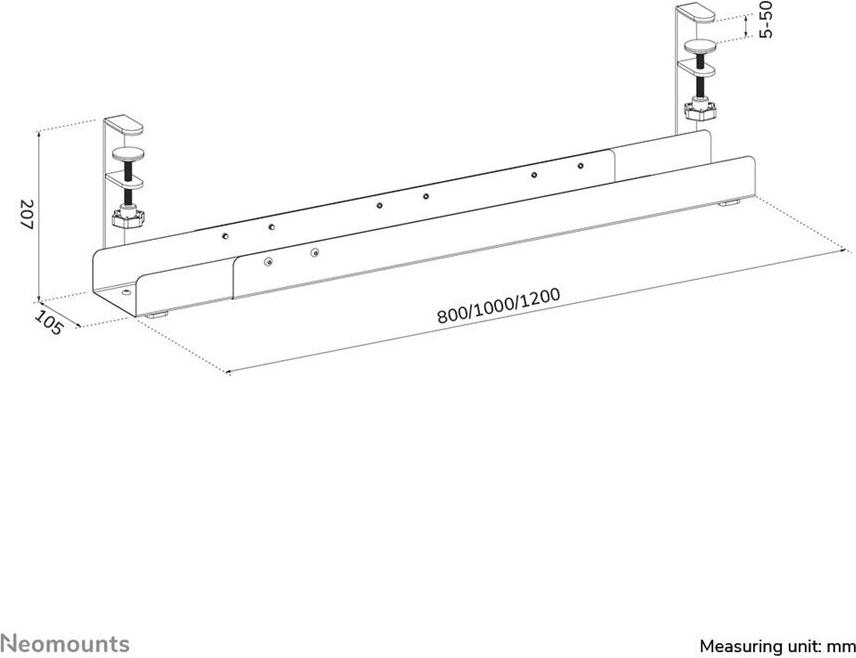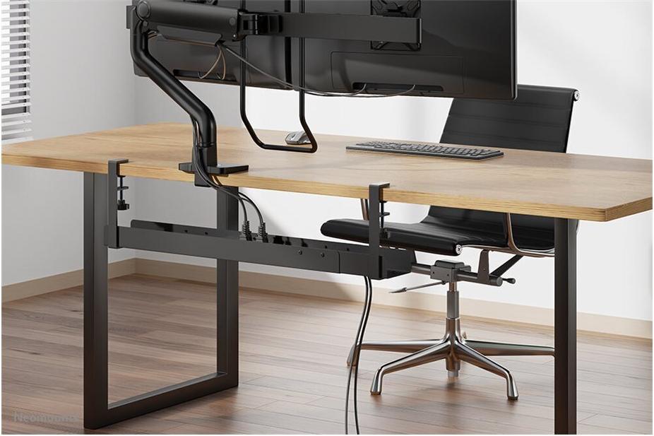 Die Neomounts-Kabelmanagementablage wurde entwickelt, um die Organisation des Arbeitsbereichs zu optimieren und gleichzeitig Kabel ordentlich zu verstauen. Diese am Schreibtisch montierbare Lösung verfügt über ein Klemmdesign, das eine einfache Installation an verschiedenen Schreibtischtypen ermöglicht. Diese aus strapazierfähigem Stahl gefertigte Kabelablage trägt eine maximale Last von 5 kg. Dank der werkzeuglosen Montage lässt sich dieses Kabelmanagementsystem schnell und bequem einrichten und eignet sich sowohl für den privaten als auch für den geschäftlichen Gebrauch.