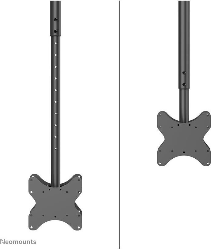 Die voll bewegliche Deckenhalterung Neomounts CL35-340BL22 bietet vielseitige Installationsmöglichkeiten für Flachbildschirme von 23 bis 42 Zoll. Dieses aus strapazierfähigem Stahl gefertigte Befestigungsset sorgt für einen stabilen Halt und trägt eine maximale Last von 45 kg. Dank integrierter Kabelverwaltung bleibt die Anlage übersichtlich, während Sie optimale Blickwinkel genießen. Die Halterung lässt sich in Höhe, Neigung, Schwenkung und Drehung verstellen und ermöglicht so eine Anpassung an jeden Raum.