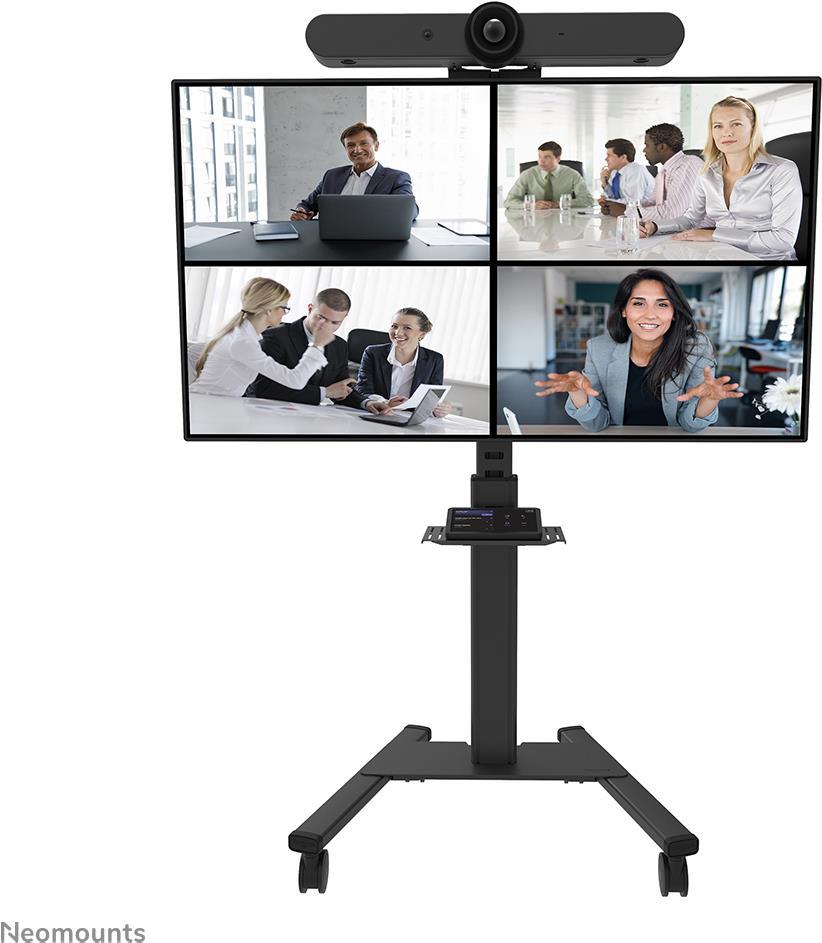Das Neomounts Select AFLS-825BL1 ist ein Videobar- und Multimedia-Kit für das mobile Bodenstativ FL50S-825BL1. Das Kit ermöglicht die Installation einer separaten Kameraablage und einer Ablage für Multimedia-Geräte auf dem Wagen. Die universelle Kameraablage kann sowohl über als auch unter dem Bildschirm angebracht werden und ist in der Höhe verstellbar, um sie an den Bildschirm anzupassen. Außerdem kann die Kameraablage sowohl an der Vorder- als auch an der Rückseite des Ständers angebracht werden. Im Lieferumfang enthalten ist ein Adapter für die Logitech Rally Bar und Rally Bar Mini (ebenfalls ober- und unterhalb des Bildschirms anbringbar).