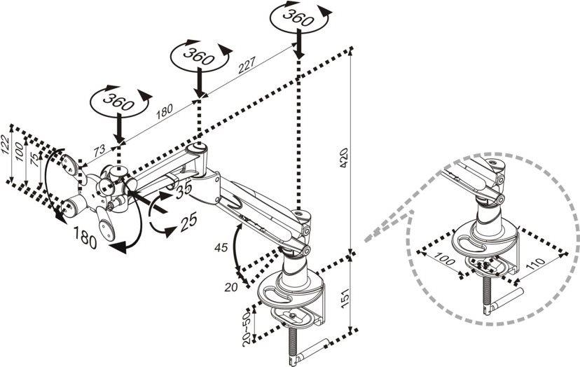| Produkttyp | Befestigungskit (full-motion) - Klemmmontage, Tischmontage |