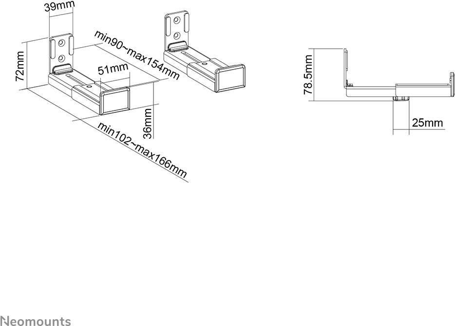 Neomounts AWL29-550BL1 Soundbar-Halterung Wandabstand (max.): 16.6 cm Schwarz 1 St. Neomounts Videobar-/Soundbar-/Lautsprecher-HalterungDie Neomounts AWL29-550BL1 ist eine universelle Videobar-/Soundbar-/Lautsprecher-Halterung mit einer m