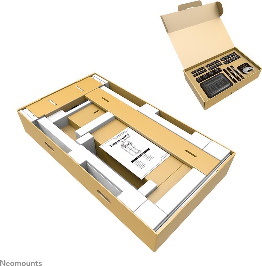 Der Neomounts WL55-875WH1 Move Lift ist eine Wandhalterung für Bildschirme bis zu 100" mit einer maximalen Gewichtskapazität von 110 kg. Die Halterung hat eine motorisierte Höhenverstellung von 65 cm (35 mm/Sekunde), wird mit einer Kabelfernbedienung bedient und ist mit einem Antikollisionssystem für zusätzliche Sicherheit ausgestattet. Die Bodenplatte der Halterung mit Platz für Bodensockel garantiert eine solide und sichere Installation. Der mitgelieferte Kabelkanal verdeckt und führt die Kabel von der Wandhalterung zum Bildschirm. Die Move Lift Wandhalterung ist teilweise vormontiert, um eine schnelle und einfache Installation zu gewährleisten, und kann mit einem Vorhängeschloss verschlossen werden. Darüber hinaus ist der WL55-875BL1 kompakt verpackt, um Transport und Lagerung zu optimieren.