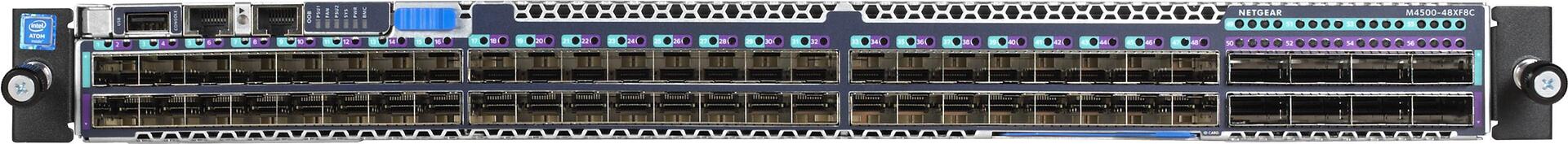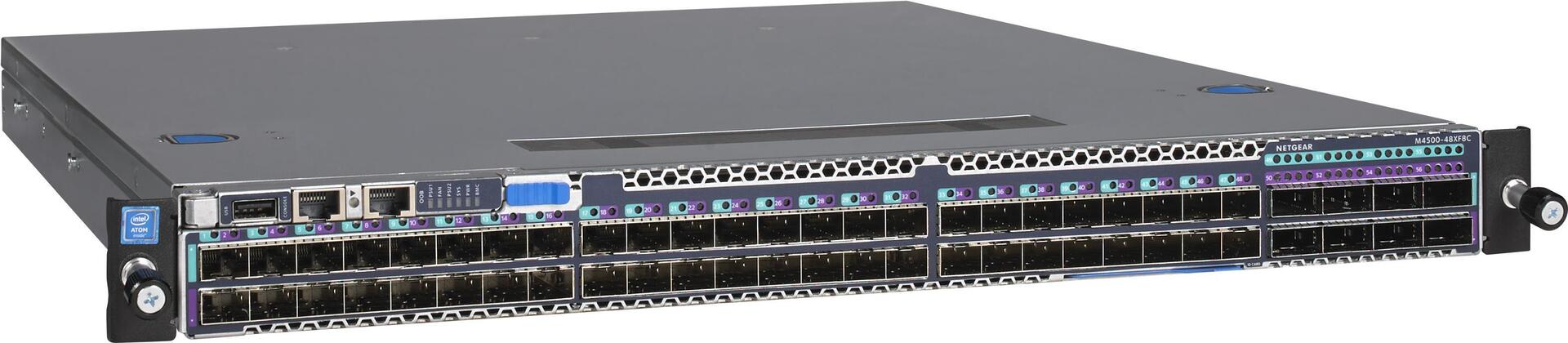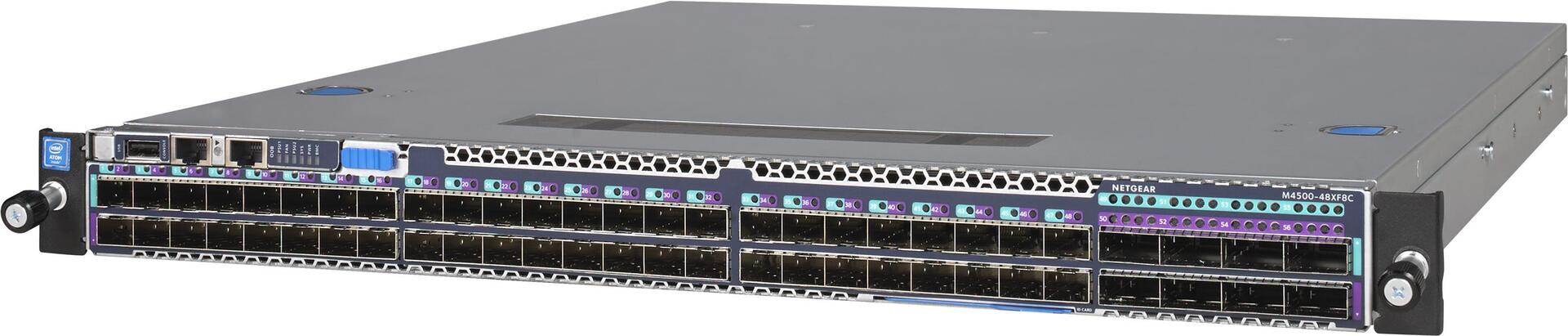 Der M4500-48XFC bietet 48-Port-SFP28, vorkonfiguriert für 10G mit 8-Port-100G-QSFP28-Uplinks, und die SFP28-Ports unterstützen 10G und 25G.