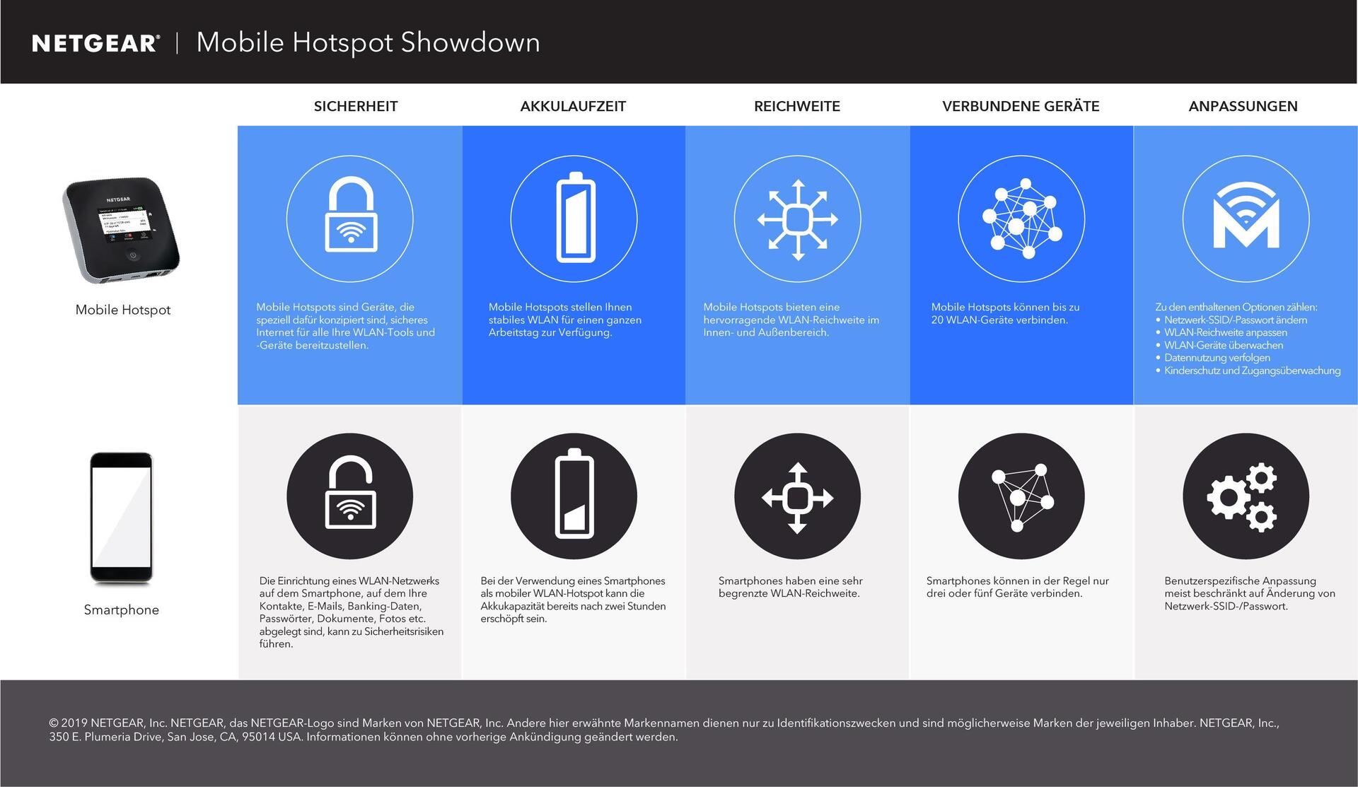 Erweitern Sie Ihr WLAN für unterwegs. Der Nighthawk M2 Mobile Router von NETGEAR ist der LTE Mobile Router der nächsten Generation, um maximale Download-Geschwindigkeiten zu erreichen und Ihr mobiles Breitbanderlebnis nochmals zu verbessern. Mit superschnellen Download-Geschwindigkeiten und der Unterstützung für CAT 20 LTE Advanced 5-Band Carrier Aggregation bietet dieser Mobile Router der Premium-Klasse die bestmögliche Nutzererfahrung bei der Verbindung mit dem Internet, egal ob unterwegs, zu Hause oder auf Reisen. Als ultimativer Router für unterwegs kann der Nighthawk M2 Mobile Router eine sichere LTE-Verbindung bereitstellen, die sich mit bis zu 20 WLAN-Geräten teilen lässt. Sie können Multimedia-Inhalte streamen und abspielen, um Ihre Freunde und Familie zu unterhalten.