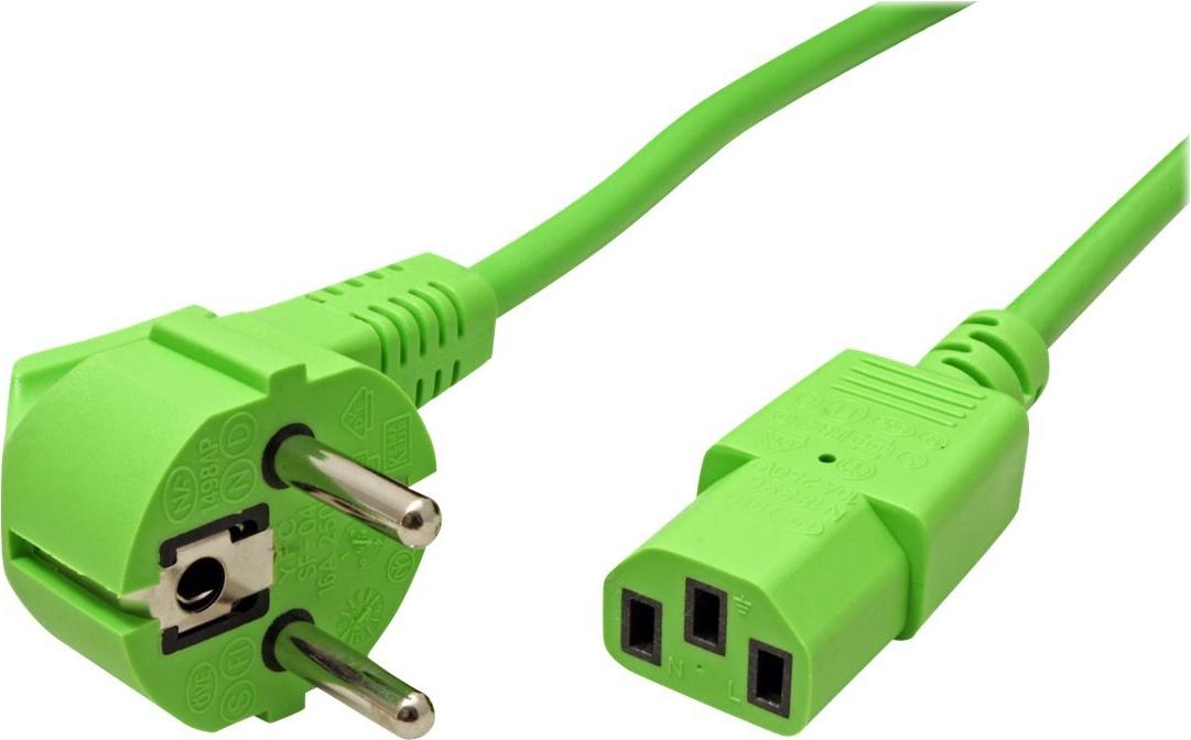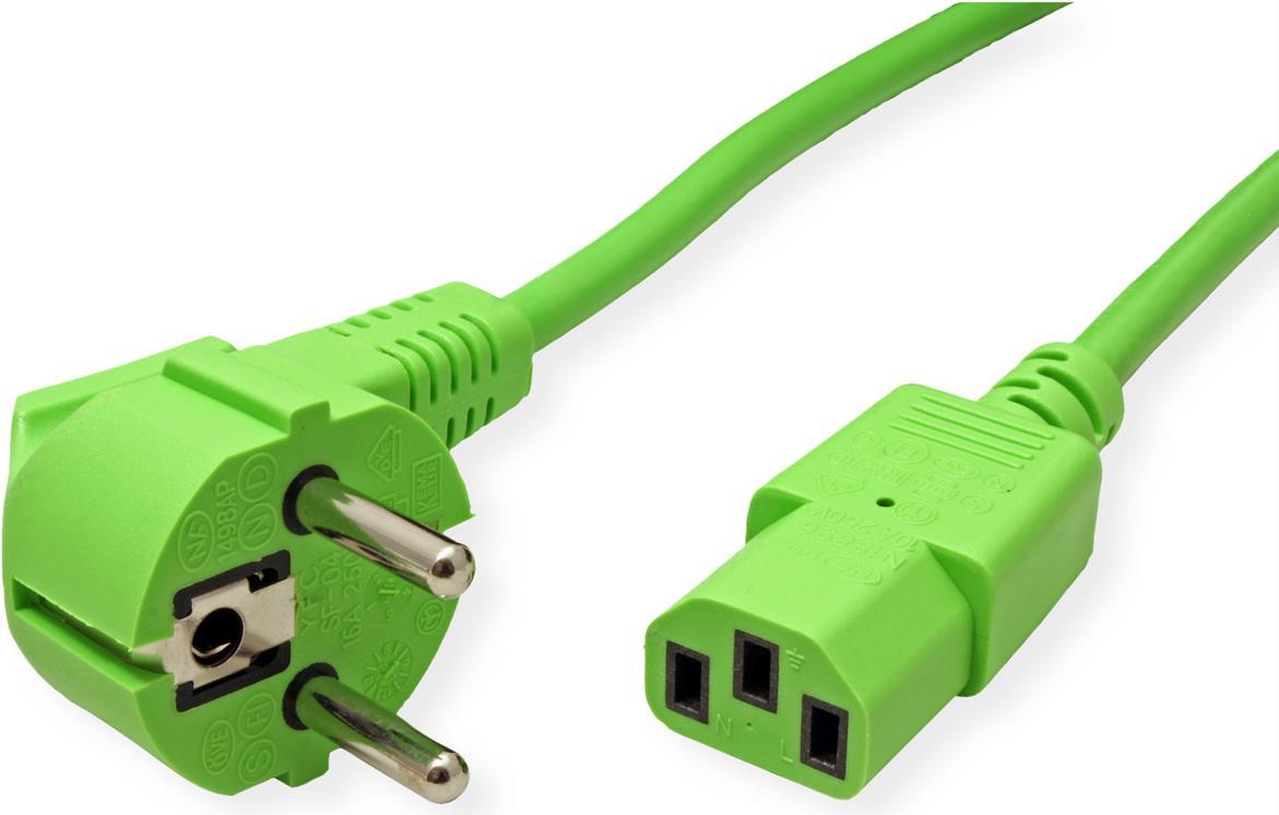 ROLINE - Stromkabel - CEE 7/7 (M) gewinkelt bis IEC 60320 C13 gerade - Wechselstrom 250 V - 10 A - 1.8 m - grün - Deutschland (19.08.1013)