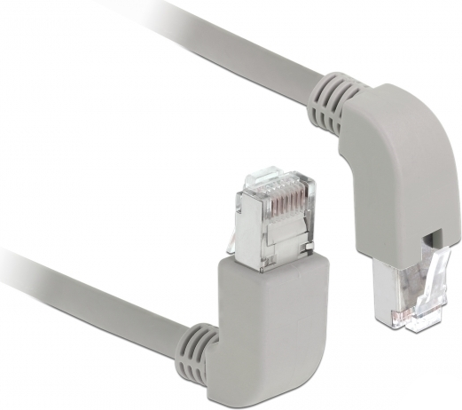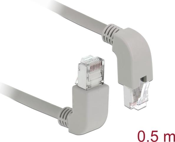 DeLOCK - Patch-Kabel - RJ-45 (M) nach oben gewinkelt bis RJ-45 (M) nach unten gewinkelt - 50cm - S/FTP - CAT 6a - geschirmt, halogenfrei - Grau (85870)