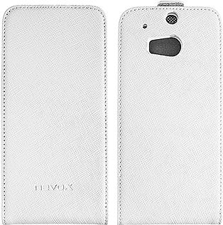 Nevox RELINO - Flip-Hülle für Mobiltelefon - PU-Kunstleder - Grau, weiß - für HTC One (M8)