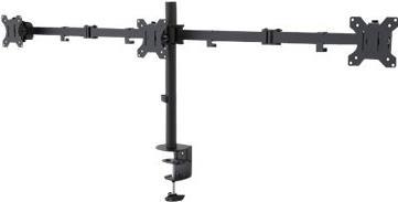 Die Neomounts Tischhalterung, das Modell FPMA-D550D3, ist ein neig-, schwenk- und drehbare Tischhalterung für drei Flachbildschirme bis 27\" (69 cm). Diese Halterung ist eine gute Wahl für platzsparende Platzierung auf Schreibtischen mit einer Tischklemme oder Tischplattenbohrung. Neomounts neig- (+45°/-45°), dreh- (360°) und schwenkbare (180°) Technologie ermöglicht es die Halterung auf jedem Betrachtungswinkel zu ändern, um von den vollen Umfang der Möglichkeiten des Flachbildschirms, zu profitieren. Die Halterung ist manuell höhenverstellbar von 0 bis 44 Zentimetern. Eine einzigartige Kabelführung verdeckt und führt Kabel von der Halterung zum Flachbildschirm. Verstecken Sie Ihre Kabel um den Arbeitsplatz schön und ordentlich zu halten.Durch eine ergonomische Halterung können Nacken- und Rückenbeschwerden vermieden werden. Ideal für den Einsatz in Büros und auf Theken oder in einem Empfangsbereich. Neomounts FPMA-D550D3 hat 3 Drehpunkten und eignet sich für Bildschirme bis 27\" (69 cm). Die Tragfähigkeit dieses Produkts ist für drei Bildschirme 7 kg je stuck. Die Tischhalterung ist geeignet für Bildschirme mit VESA 75 x 75 oder 100 x 100 mm Lochmuster.