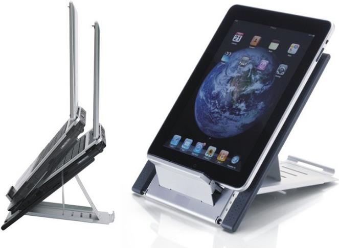 Der Neomounts Artikel NSLS100 ist ein universeller Tablet-/Notebook-Ständer, für das ergonomisch positionieren Ihres iPads/Notebooks auf Ihrem Schreibtisch.