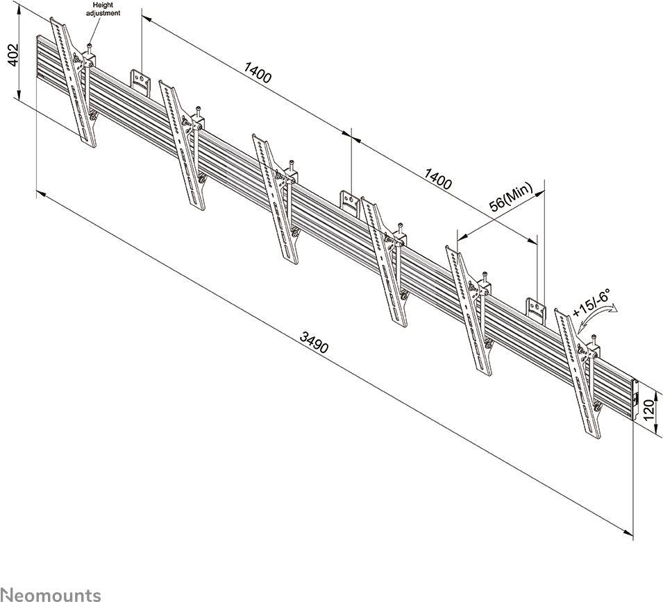 NEWSTAR Menuboard Wall mount for three 81,28cm 32Zoll-139,7cm 55Zoll/165,1cm 165,10cm (65") Screens - Black (NMPRO-WMB3)