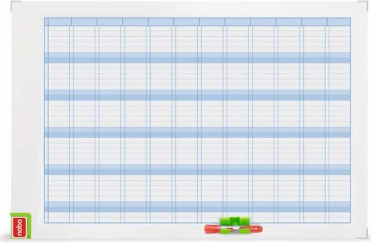 NOBO Jahresplaner Performance (B)900 x (H)600 mm 1 Jahr in 12 Monaten, weiße, magnethaftende, beschreibbare (3048001)