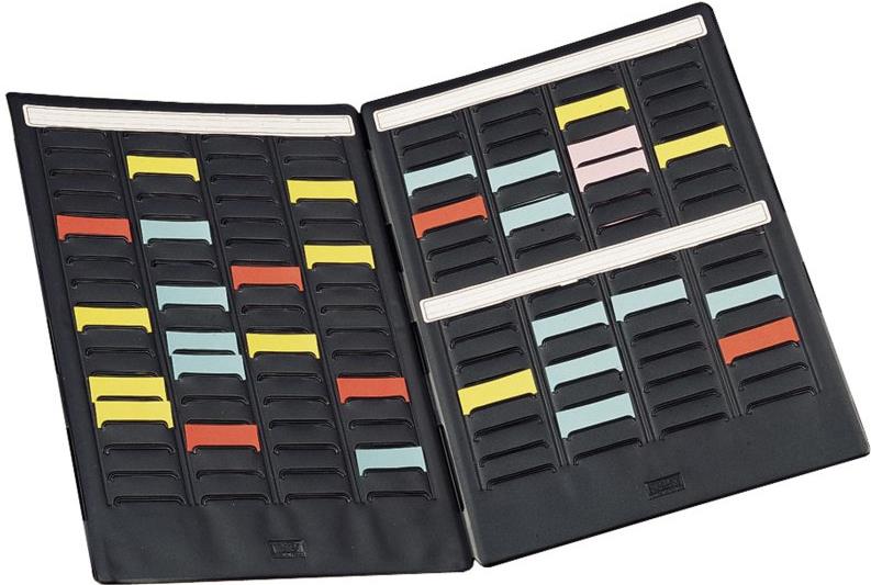 T-Karten-Systeme sind geeignet für Planung und Nachverfolgung. Sei es wöchentliche, jährliche oder spezielle Projektplanung, das System ist so flexibel wie Sie wünschen! Wenn Sie sich für den Planungszeitraum entschieden haben, benutzen Sie Titelstreifen und Indexstreifen um Zeiten, Termine, Projektnamen etc. festzulegen. Mit den T-Karten halten Sie Informationen fest, der "T"-Kopf der Karte dient dabei als Titelzeile, die restliche Fläche ist für Notizen. Nachverfolgen können Sie zum Beispiel Bemusterungen, Werkzeugverleih, Ausstellungsmaterial, Car Pools, Raumplanung … die Liste lässt sich beliebig fortsetzen! Mit den Mini-Planern können Sie Ihre Projekte und Termine einfach mitnehmen.