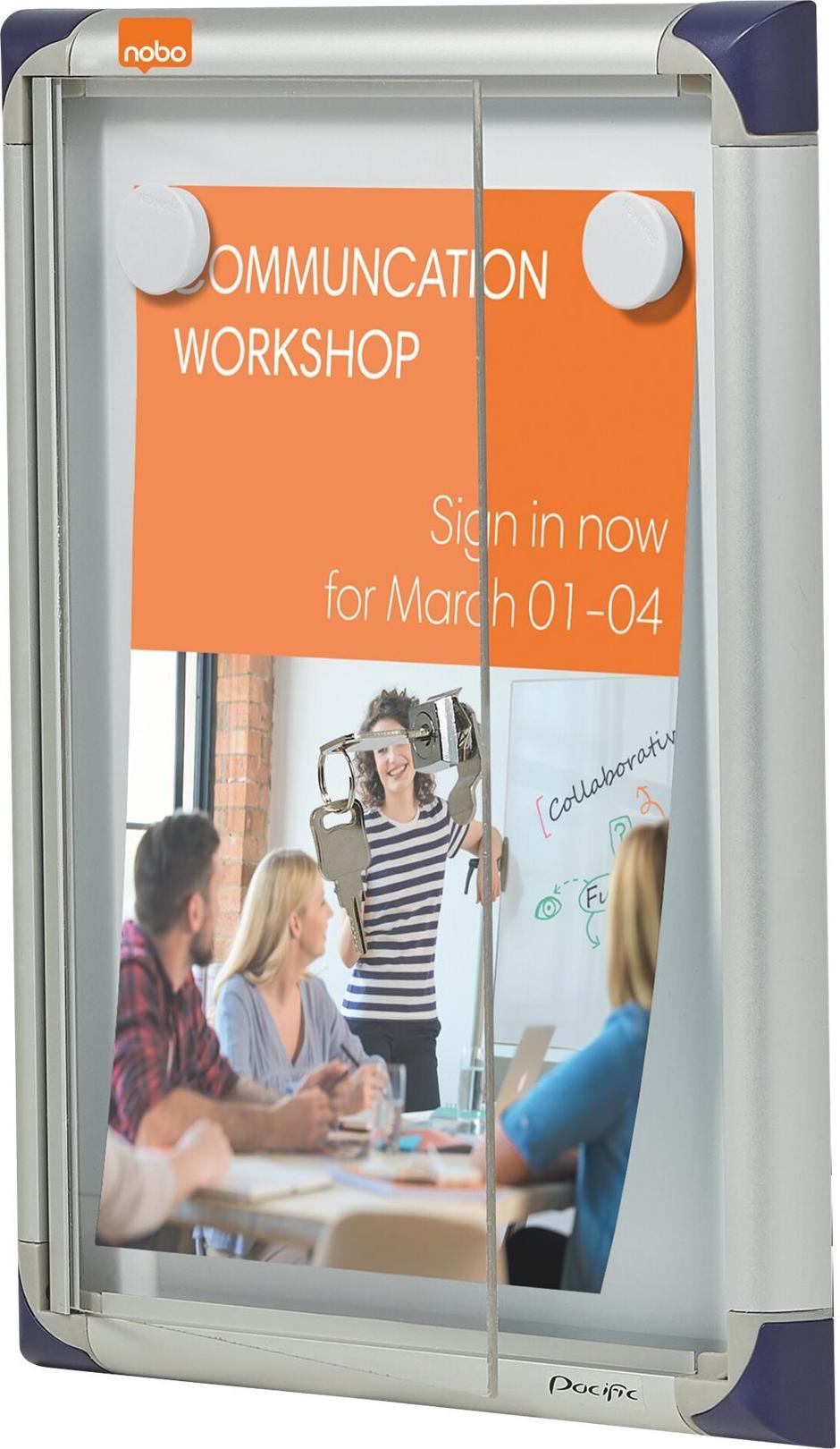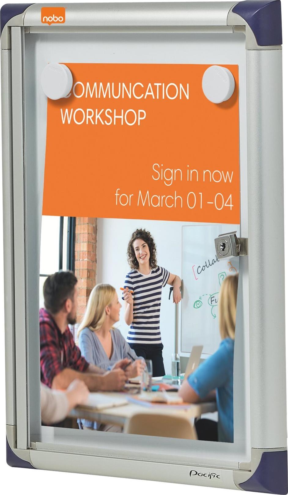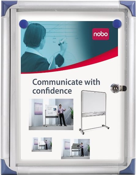 Präsentieren Sie wichtige Informationen einfach und sicher in einem verschließbaren Nobo Schaukasten. Diese extraflachen, praktischen Kästen eignen sich perfekt für vielbenutzte Korridore und Arbeitsplätze. Sie können Aushänge mit Magneten befestigen oder die Weißwandtafel mit Boardmarkern beschriften.