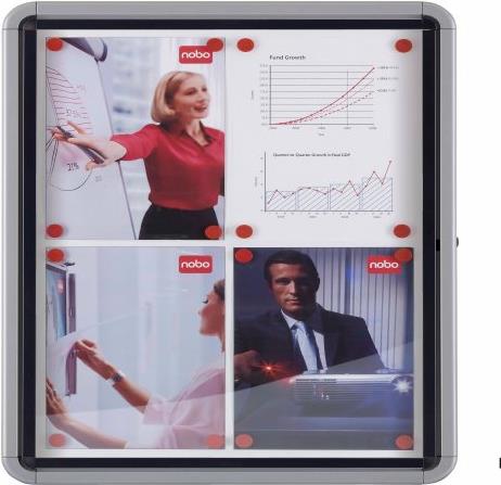 NOBO Schaukasten, Metall-Rückwand, Außenbereich, 4 x DIN A4 wetterfest, wassergeschützt, Aluminiumrahmen, 4 mm Sicher- (1902577)