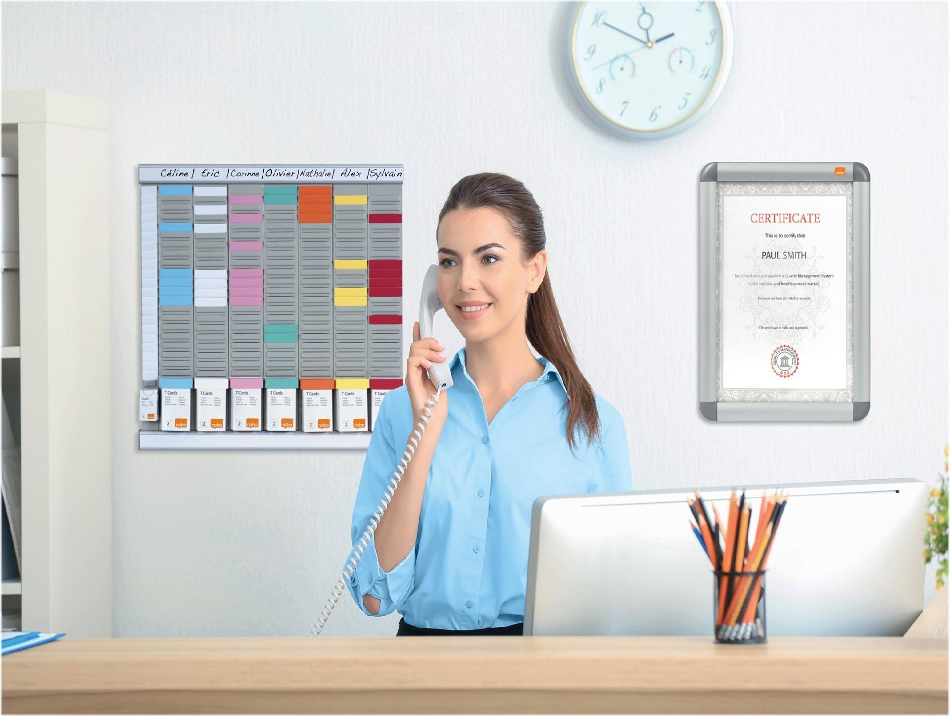 Organisieren Sie Ihre Projekte mit dem T-Karten-System von Nobo. T-Karten verschiedener Größen bieten je nach Bedarf Platz für knappe oder sehr detaillierte Informationen. Und dank der großen Farbauswahl lassen sich Teams, Projekte und Ressourcen farblich unterscheiden und auf einen Blick erfassen.
