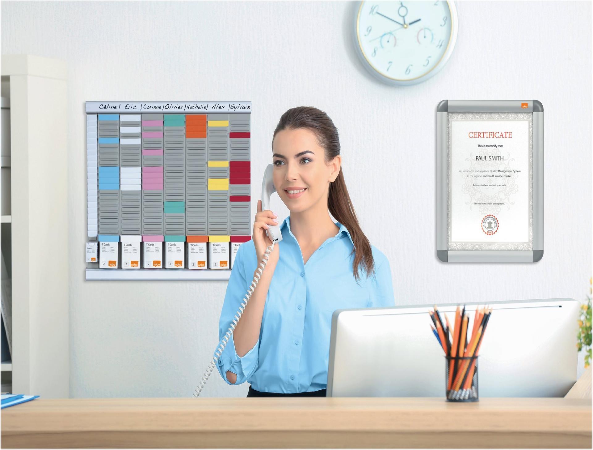 Organisieren Sie Ihre Projekte mit dem T-Karten-System von Nobo. T-Karten verschiedener Größen bieten je nach Bedarf Platz für knappe oder sehr detaillierte Informationen. Und dank der großen Farbauswahl lassen sich Teams, Projekte und Ressourcen farblich unterscheiden und auf einen Blick erfassen.