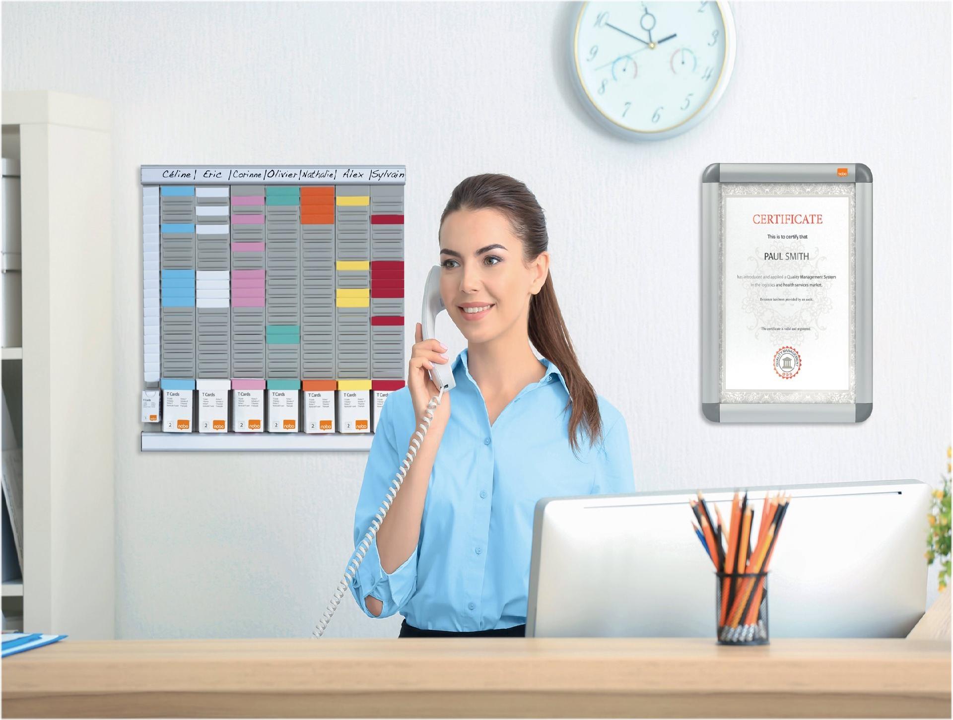 Organisieren Sie Ihre Projekte mit dem T-Karten-System von Nobo. T-Karten verschiedener Größen bieten je nach Bedarf Platz für knappe oder sehr detaillierte Informationen. Und dank der großen Farbauswahl lassen sich Teams, Projekte und Ressourcen farblich unterscheiden und auf einen Blick erfassen.