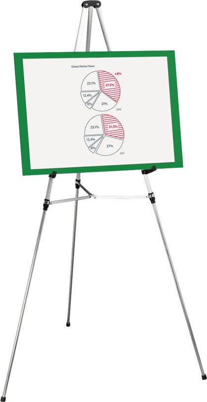 Der stabile und von 100 cm bis 165 cm stufenlos höhenverstellbare Teleskopaufsteller eignet sich für die Präsentation von Bildern, Grafiken, Hinweistafeln usw. Das Dreibeingestell aus Aluminium hat durch die gekreuzten Träger einen stabilen Stand und trägt ein Gewicht bis zu 12 kg. Der Displayhalter ist verstellbar und rastet an den Beinen ein.