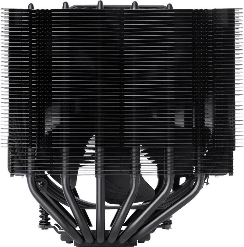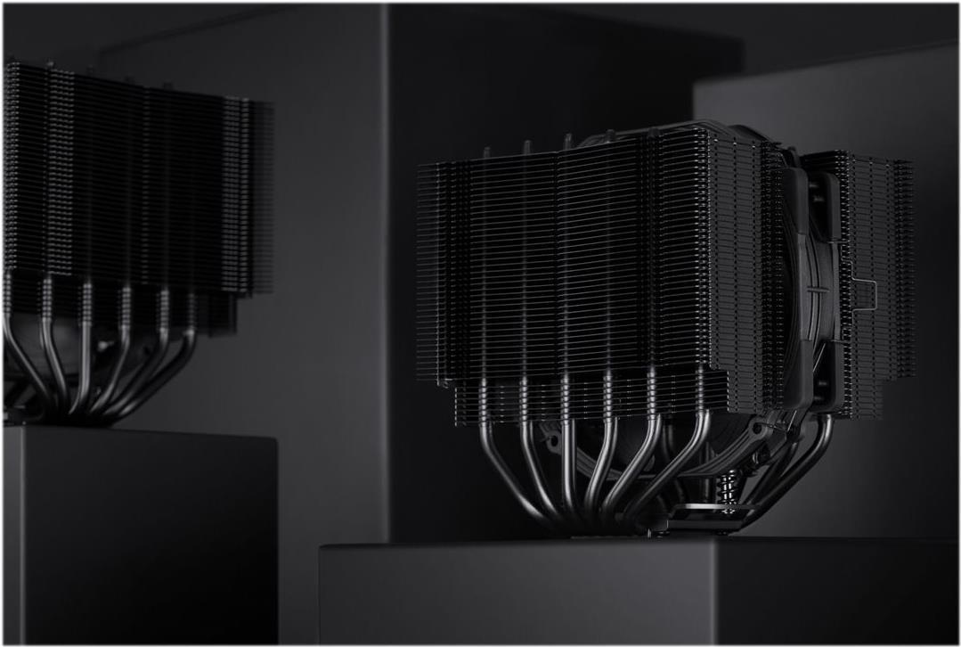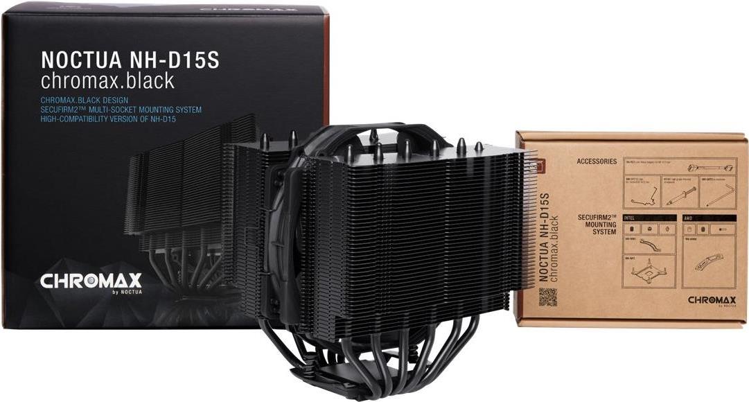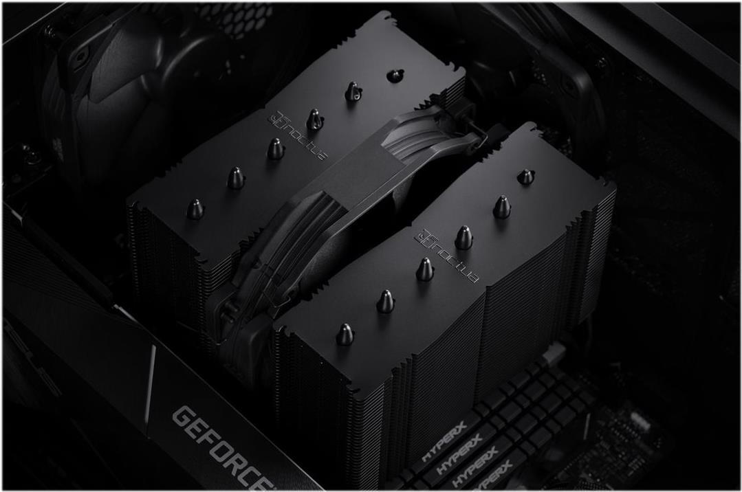 Der NH-D15S chromax.black ist eine komplett in Schwarz gehaltene Version von Noctuas flüsterleisem, vielfach ausgezeichnetem Premium-Kühler NH-D15S. Das Erfolgsrezept bleibt dank des gleichen asymmetrischen Doppelturm-Kühlkörpers und der Konfiguration mit einem einzelnen NF-A15 PWM Lüfter unverändert: Dual-Tower-Performance in Verbindung mit hervorragender Speicher-, Gehäuse- und PCIe-Kompatibilität. Die chromax.black Version mit ihrem schwarzen Lüfter und schwarz beschichteten Kühlkörper kombiniert diese Vorzüge überdies mit einem schicken Stealth-Design. Komplettiert wird das rundum hochwertige Gesamtpaket durch das renommierte Multi-Sockel-Montagesystem SecuFirm2, Noctuas beliebte NT-H1 Wärmeleitpaste sowie volle 6 Jahre Herstellergarantie - eine echte Premium-Lösung für anspruchsvolle Anwender, die einen hochkompatiblen Dual-Tower-Kühler suchen, der genauso gut aussieht wie er kühlt!